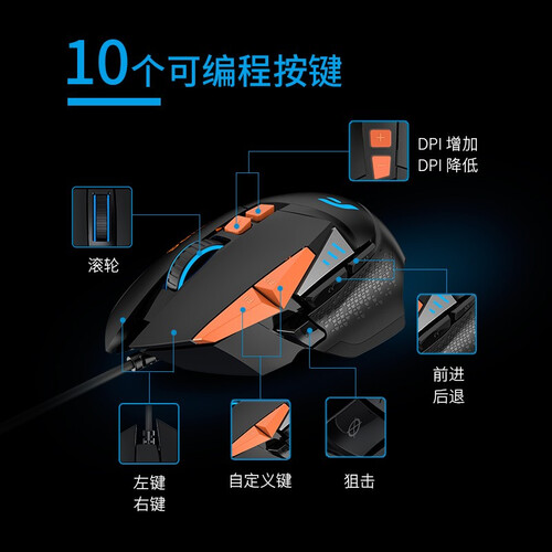 拥有十个可编程按键设计,自定义宏配置,按键更符合你的操作习惯,且搭载了耐磨脚垫,持久使用不易损坏。