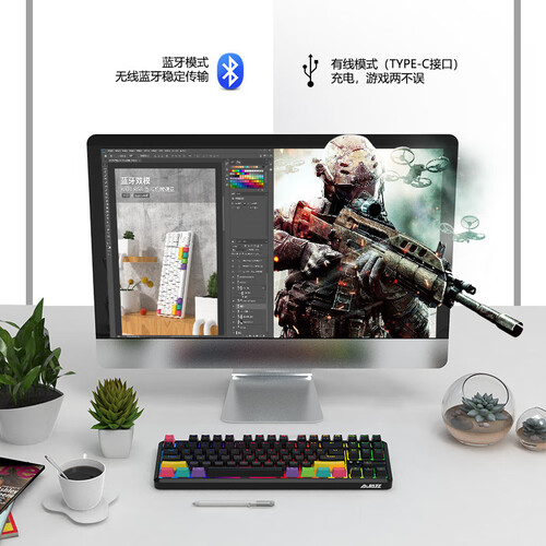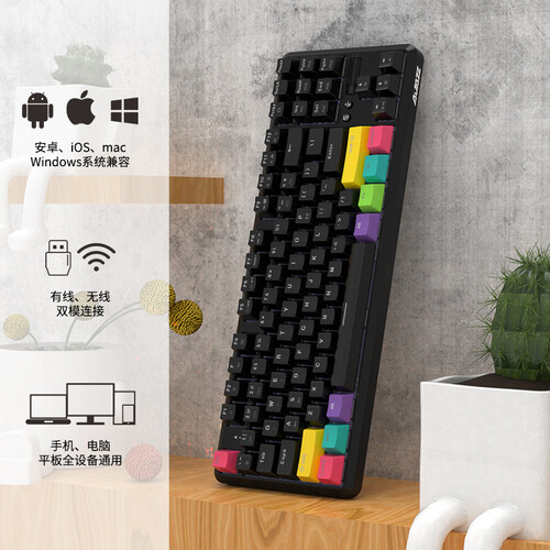 拥有RGB背光灯效,减少误操作现象,无惧繁重工作堆积。支持蓝牙双模连接,摆脱束缚,从容应对不同办公场景。