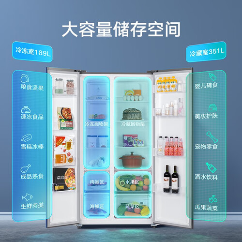 下沉式出风,避免冷风直吹,保证食物新鲜;配备4枚温度传感器,根据不同场景智能调控将温度,保证食材新鲜不变质。