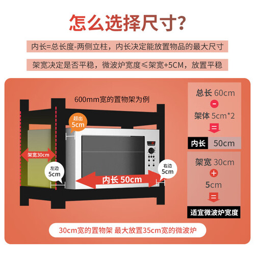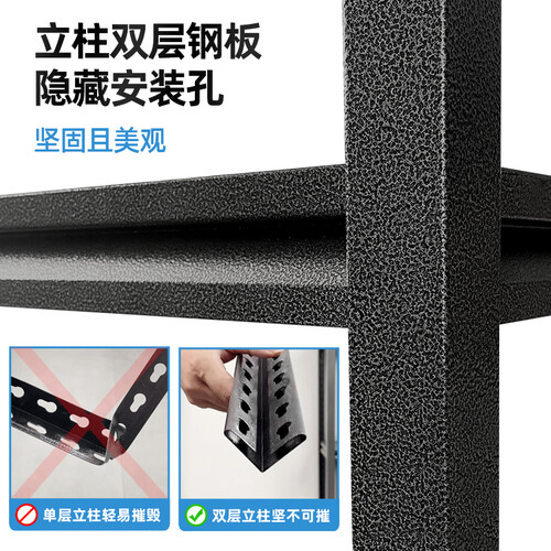 用料厚实,承重性良好,轻松满足日常置物需求,无惧重量。立柱葫芦孔设计,能够随意安装横梁,随心调节层高。