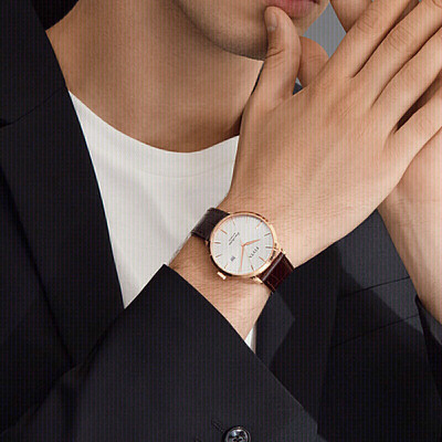 采用蓝宝石制造而成的玻璃镜面强大高,耐磨抗摔,透亮不易反光视野清晰。镀玫瑰金的指针在银色表盘的承托下,贵气精致。