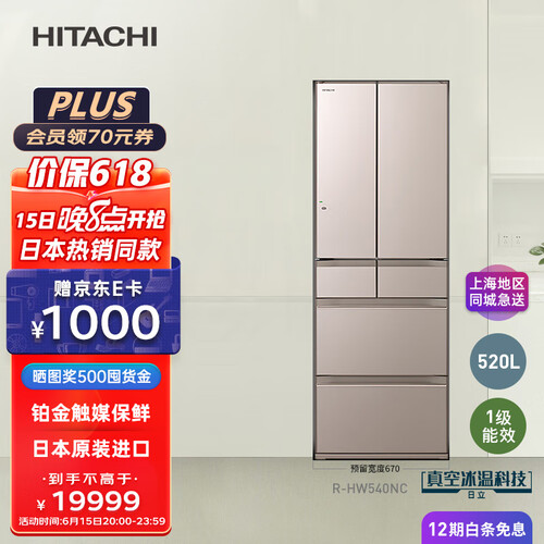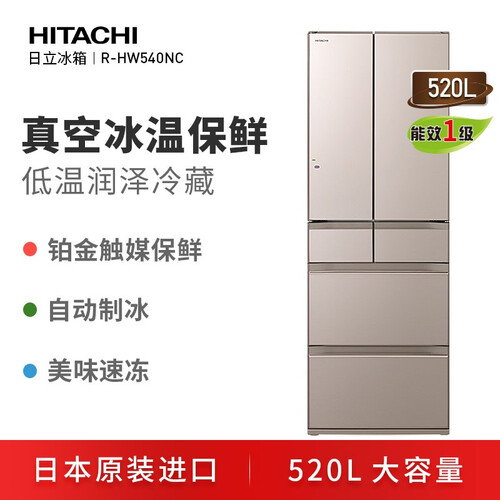 日立这款冰箱拥有520L大容量的同时,还配备真空冰温室和铂金触媒,不仅能够长效保鲜,还不会有异味窜味。