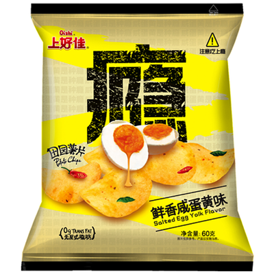 精选优质蛋黄粉并精心调配,在薯片的酥脆香醇中感受咸蛋黄的鲜香口感,金黄松脆的独特美味。