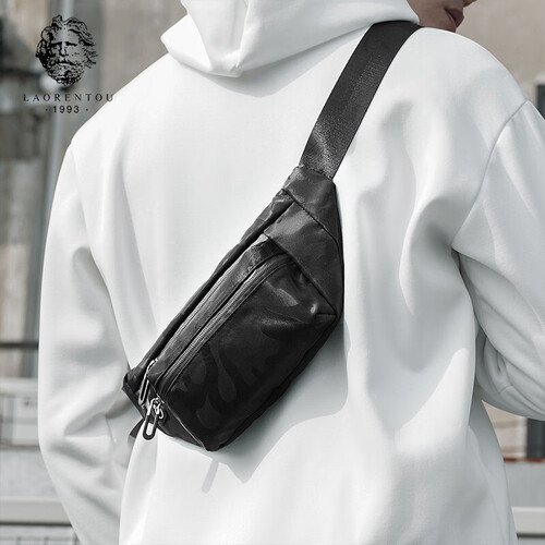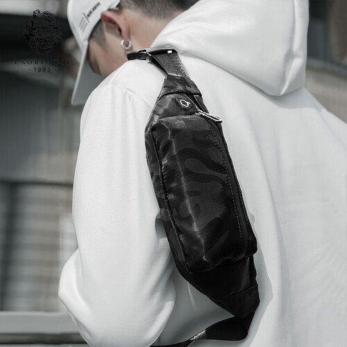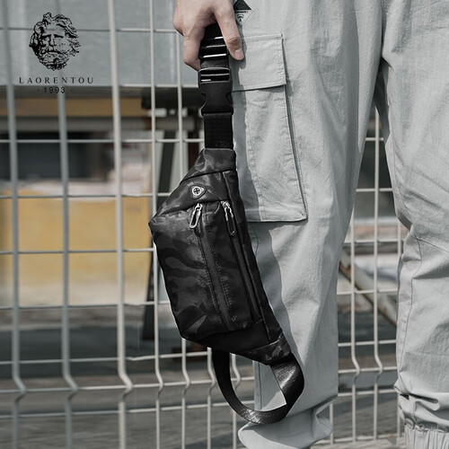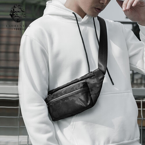 老人头拉链暗袋胸包