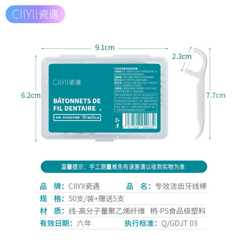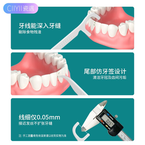 选用高分子细滑圆线,细线仅0.05mm,清洁使用不扩张牙缝。一体成型接头设计,韧性高,使用不易断线。