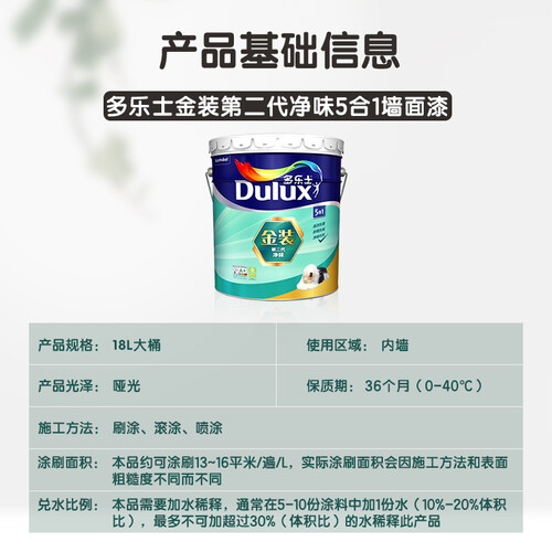 这款乳胶漆抗菌能力强,防霉抗碱,采用净味配方,气味自然清新,不刺鼻,低气味更环保。