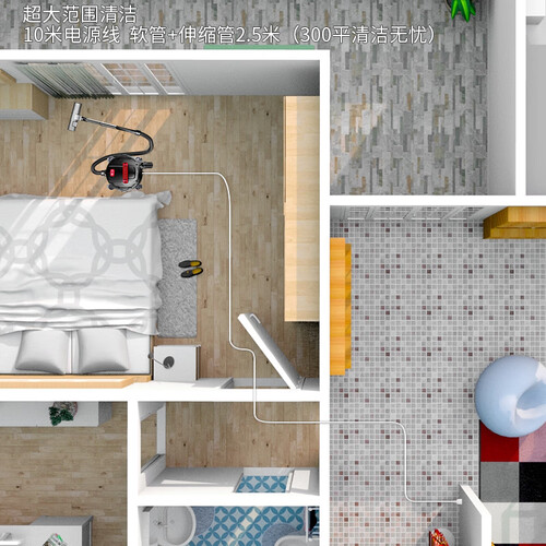 采用止水阀浮标技术,可有效避免电机进水,保护电机不受损。拥有小身材大容量特点,搭配10米电线,室内清洁更方便。