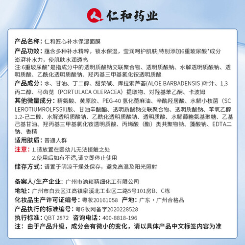 仁和药业 美白补水面膜