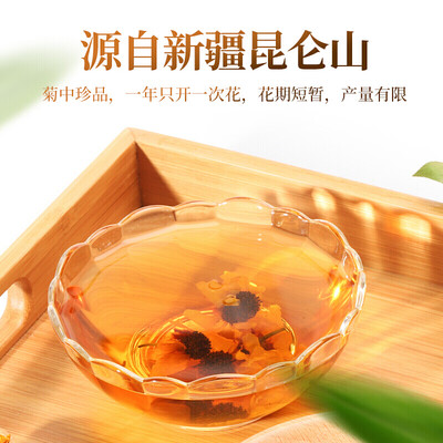 来自新疆昆仑原产地,生长环境优越,品质更加出色。冲泡之后汤色绛红,花瓣不容易散开,而且花型饱满密度高。
