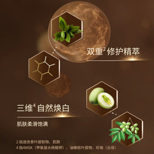 三重凝时精粹,可深入滋养柔润肌肤,焕亮肤色保持通透感。迷迭香叶提取物,滋润修护肌肤,调节水油保持嫩滑。
