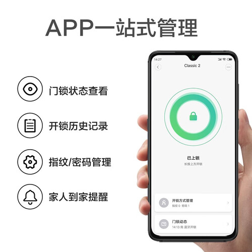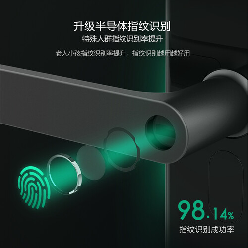 采用新一代半导体指纹模组,识别率高,指纹识别越用越好。还带有多重传感器,检测到未关紧时便会提醒。