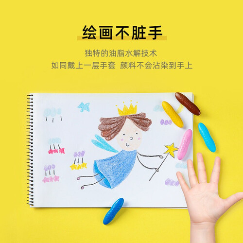 符合欧盟安全标准,带来放心品质。可爱造型的设计,方便宝宝抓握,绘画不受限,油脂水解配方,不易脏手。