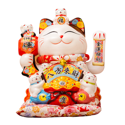 八方来财的招财猫摆件,开业送礼希望对方事业红火,讨人喜欢。插电和电池两用设计灵活方便,满足多场景使用需要。