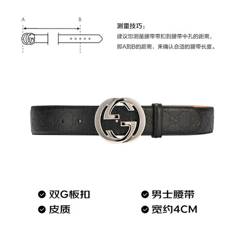 新颖双G板扣设计,结合精湛工艺,光滑舒适,散发光泽,尽显轻奢感。经典黑色腰带设计,男女通用,便捷搭配。