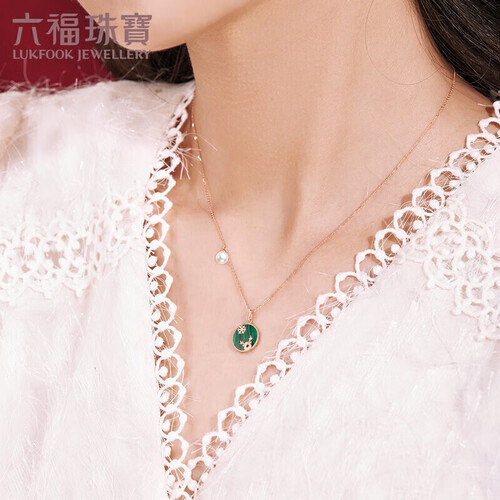 六福珠宝 麋鹿母贝 K金项链