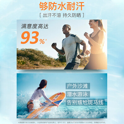 遇水遇汗不容易溶解,提供高倍又长效的防晒效果,清透自然不假白。出色的防汗能力,上脸清爽不长痘。
