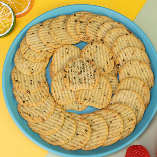非油炸薯片,相比普通薯片油脂降低30%,享受美味兼顾健康。外表色泽金黄,薄厚适宜,色香味俱全,一口心动。