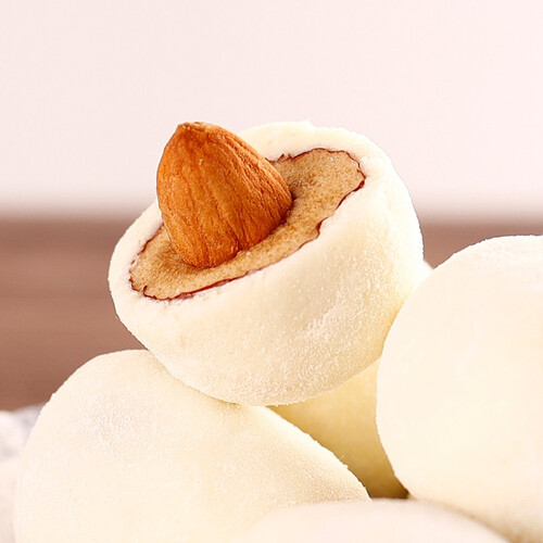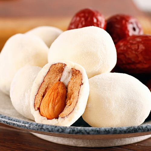 这是一款夹心奶枣,散发着浓郁的奶香,让你迫不及待想要品尝。选用大个巴旦木,颗颗香脆诱人,好吃到停不下来。
