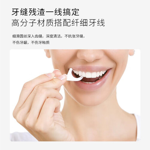 高分子牙线棒,针对各种牙缝残留物、口臭、牙菌斑等问题。牙线采用聚苯乙烯材料,细软且拉力强,不易开叉分裂,温和呵护口腔。
