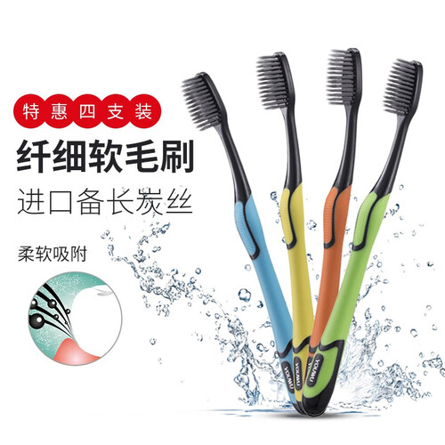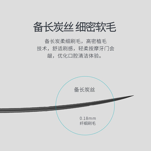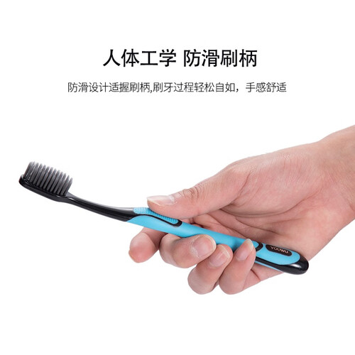 选用备长炭柔细刷毛,柔软舒适,温和清洁口腔;防滑设计适握刷柄,刷牙过程轻松自如;柄颈弯折,不易断裂。