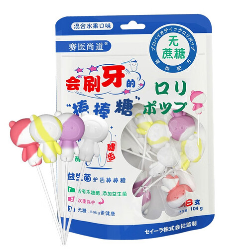 这款棒棒糖含有木糖醇,添加益生菌,搭配惟妙惟肖的奇卡拉造型,随心随享,日本监制,安全圆角,多种口味,宝宝更喜爱。