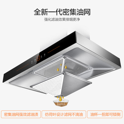 90秒一键爆炒风,澎湃风量强势席卷双灶油烟。新一代密集油网,油脂分离快速,排烟性能不打折。一级能效标准,享环保品质生活。