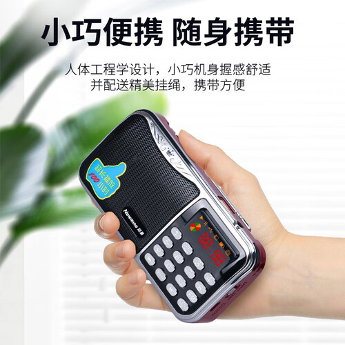 机身采取人体工程学设计,小巧精致,握感舒适,且配有挂绳,随身携带,加之数字按键,一键轻松选歌调频,无需繁琐操作。