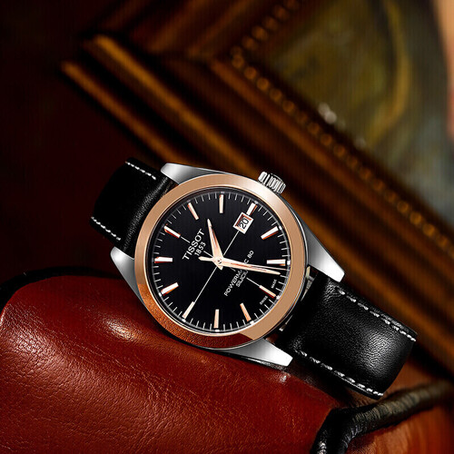 经典黑色表盘,环绕金色字钉刻度,形成醒目碰撞,时尚大气又亮眼。蓝宝石玻璃表镜,高透光且易读时,防刮耐磨更抗摔。