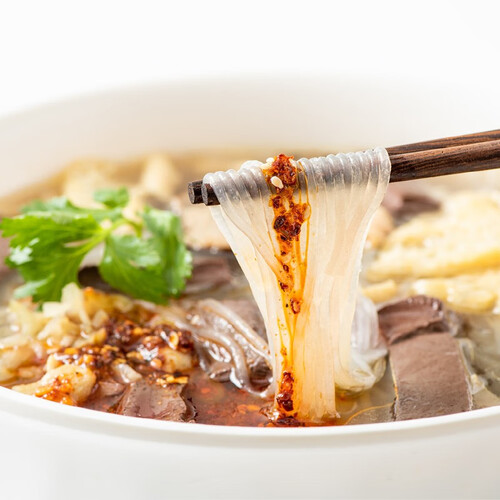 汤汁采用慢火细心熬煮,不添加增稠剂和防腐剂,鲜香美味,健康放心。粉丝采用热浆工艺制作,口感筋道无添加。