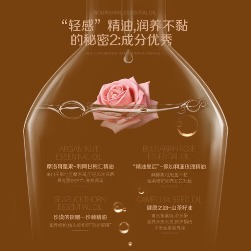采用微分子技术,令精油微分子快速到达头皮中,滋养直达发根;沙棘精油润养修护,摩洛哥坚果强修护力;养护头皮,抚平毛躁受损。