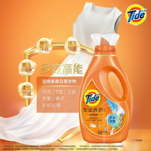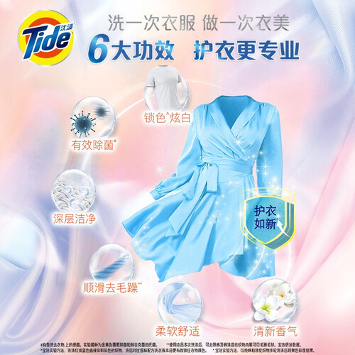 除菌率达99%,具有强洁净力,可轻松洗去顽渍细菌,适合健身达人使用;更能锁住衣物原色防褪色,让你好像每天穿新衣。