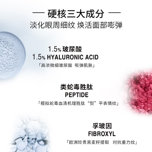 高浓微细玻尿酸,补充水分,平滑肌肤,肌底充盈嘭弹。卓效淡化细纹,提升肌肤紧致度和弹性。