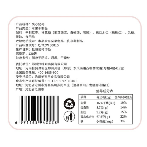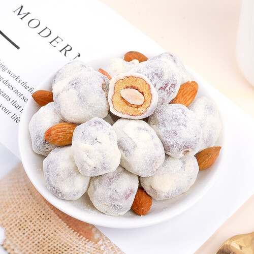 食材健康新鲜,巴旦木包裹于新疆灰枣中,加以棉花糖包裹,咬下去甜香可口。加入新西兰黄油,口感香醇无异味,吃货不容错过。