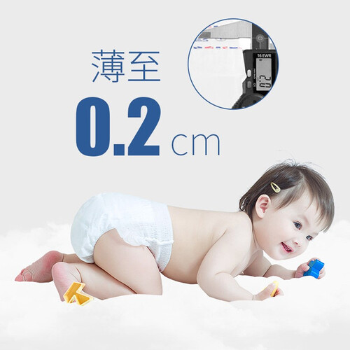 高分子芯体柔软纤薄,强韧抗拉伸,快速吸水锁水,防止反渗泄露,持久保持干爽舒适,呵护宝宝肌肤。