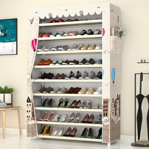 此款鞋架覆盖加厚无纺布,可以当作柜子使用,不仅限于存放鞋靴,还能存放书籍衣物等物品,有效收纳维持整洁居家环境。