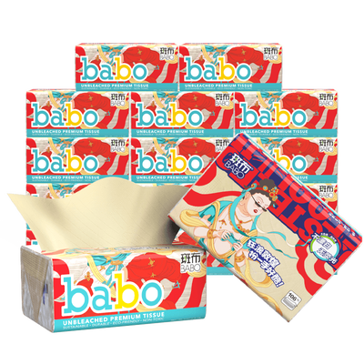 斑布狂浪敦煌系列,采用四层加厚设计,柔韧亲肤无刺激,湿水也不易破,可以干湿用;气垫压花给你云朵般的舒适触感,松软不分层。