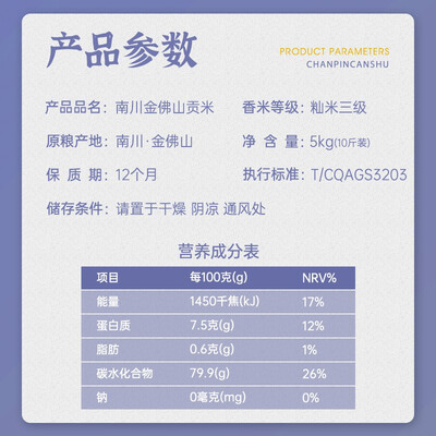 产自南川金佛山,经云山雾缭与阳光饱和,形成晶莹饱满的米粒状儿,味道自然芳香。精选优良稻种,高山田种,成就地道的重庆味儿。