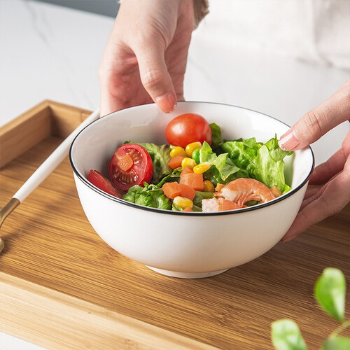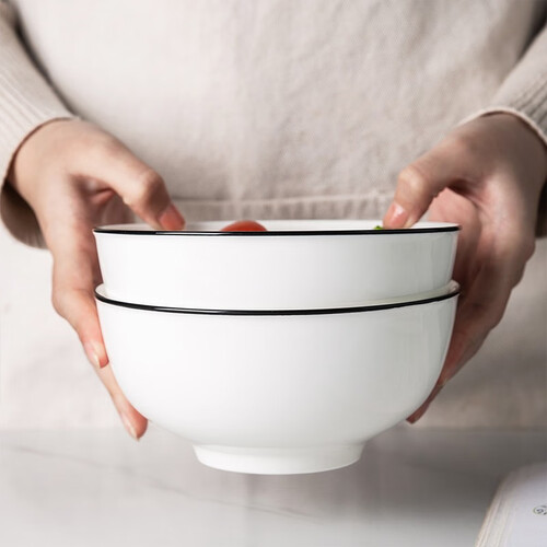 白色碗身搭配黑色碗边装饰,简约大方,选用优质原材料,使用更放心。