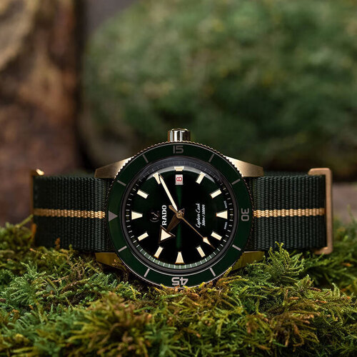 采用绿色库克青铜表盘设计,自带复古气质,可以与装扮融为一体。经过夜光涂层处理,确保暗光环境下能够清晰读时。