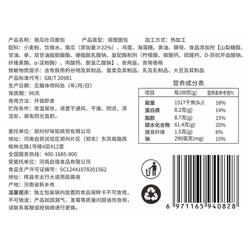 严选原材料,优质小麦粉与新鲜鸡蛋结合,并且添加新鲜南瓜原浆,清淡健康,滋味自然清甜,口感香软绵密。