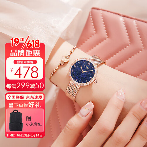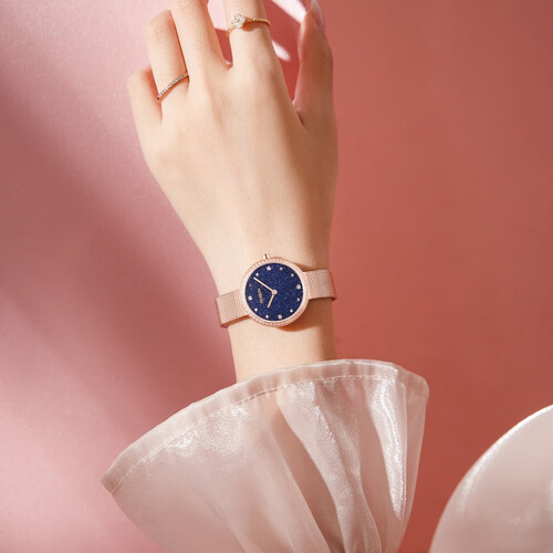 这款手表采用蓝砂星空表盘,神秘迷人,修饰女性的优雅与气质。同时纤薄的表盘,时尚又灵动,外观精致美观,轻盈佩戴。