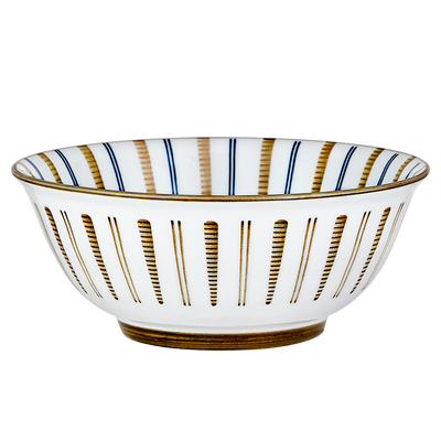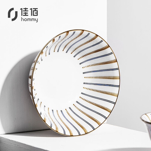 融入花蕊设计元素的陶瓷碗,配以蓝色、褐色线条,俏皮精致。而且碗身容量大,实用性强,方便吃拉面、拌沙拉。