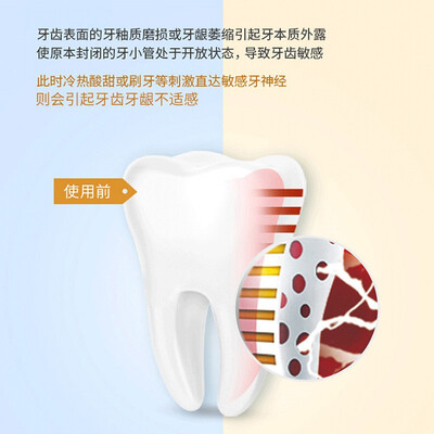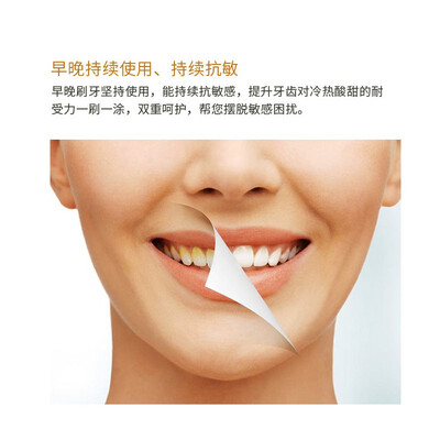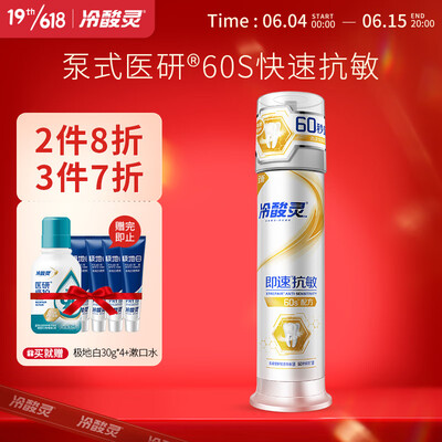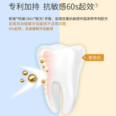 采用双重抗敏配方,一分快速舒缓牙齿敏感,有效缓解因冷、热、酸、甜刺激造成的牙齿酸痛等不适。直立按压泵设计,取用更加方便。