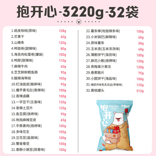 坚果、卤味、果干与小零食,共30款精心挑选的零食,超7斤大份量更满足。各式丰富美食,让日常追剧不再无聊。