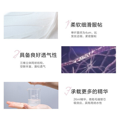 采用高山植萃养肤配方,帮助收敛粗大毛孔,补水控油,保湿修护;搭配细纤维膜布,如绸缎般轻裹肌肤,服帖柔软,纳液性强。