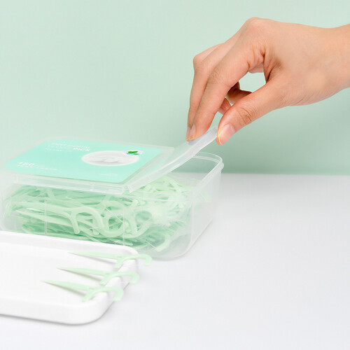尖头尾端设计,能够将食物残渣剔除,保证牙齿更干净。内含竹炭、薄荷成分,可避免异味产生,带来清新口气。
