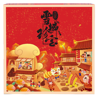 精致插画装饰外盒,时尚别致,喜庆热闹,适合作为节礼送给亲友。内里菌菇经过烘干处理,残留水分少,足干易储存。