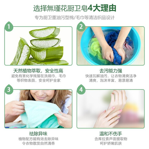 这款洗衣皂含有植物配方,能温和去除污渍,同时有效去除异味,令衣物散发自然清香;更添加芦荟提取物,呵护娇嫩肌肤。