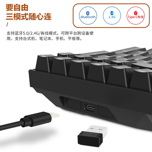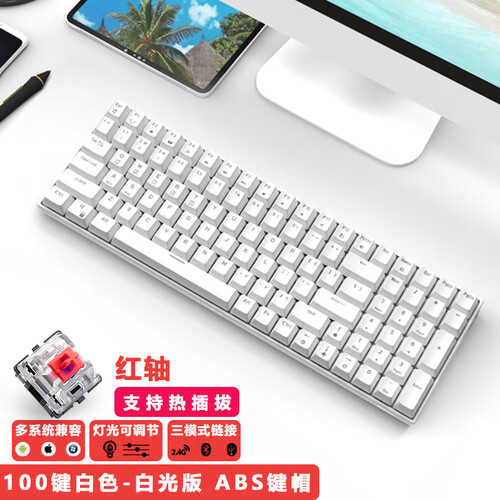 采用创新100键布局设计,结构简洁清爽,视觉上令人眼前一亮。支持三种模式连接,满足你的多种使用需求。