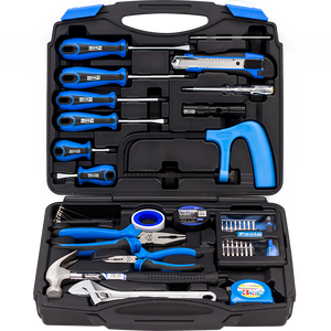 手提工具箱采用加厚的设计,质地厚实,禁得起磕磕碰碰。各项工具都有卡位设计,摆放整齐,不会脱落出来。